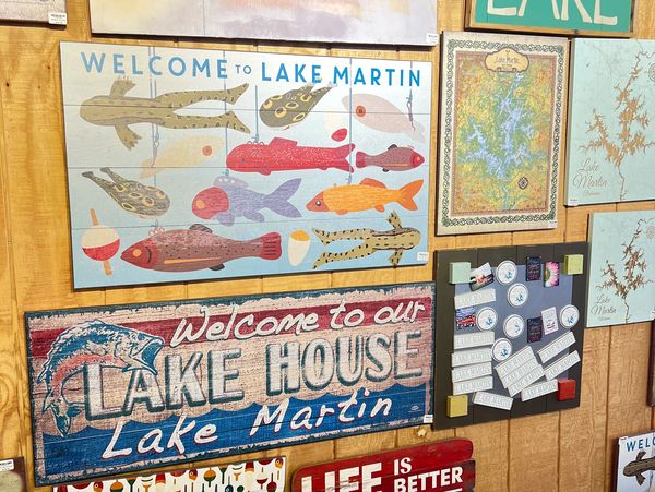 Add a touch of local charm to your home, dock, or lake house with our Lake Martin maps and custom signs. At Lake Martin Mini Mall, we offer a variety of lake-themed wall art, wooden signs, and detailed maps that capture the beauty and personality of the area. Whether you're looking for a vintage-style map of Lake Martin, a custom dock sign, or a fun piece that celebrates your favorite spot on the water, our collection has something for every lake lover. These pieces make perfect gifts and timeless keepsakes to remember your time at the lake. Designed with both style and sentiment, our Lake Martin maps and signs are a customer favorite for decorating, gifting, and celebrating life on the water.